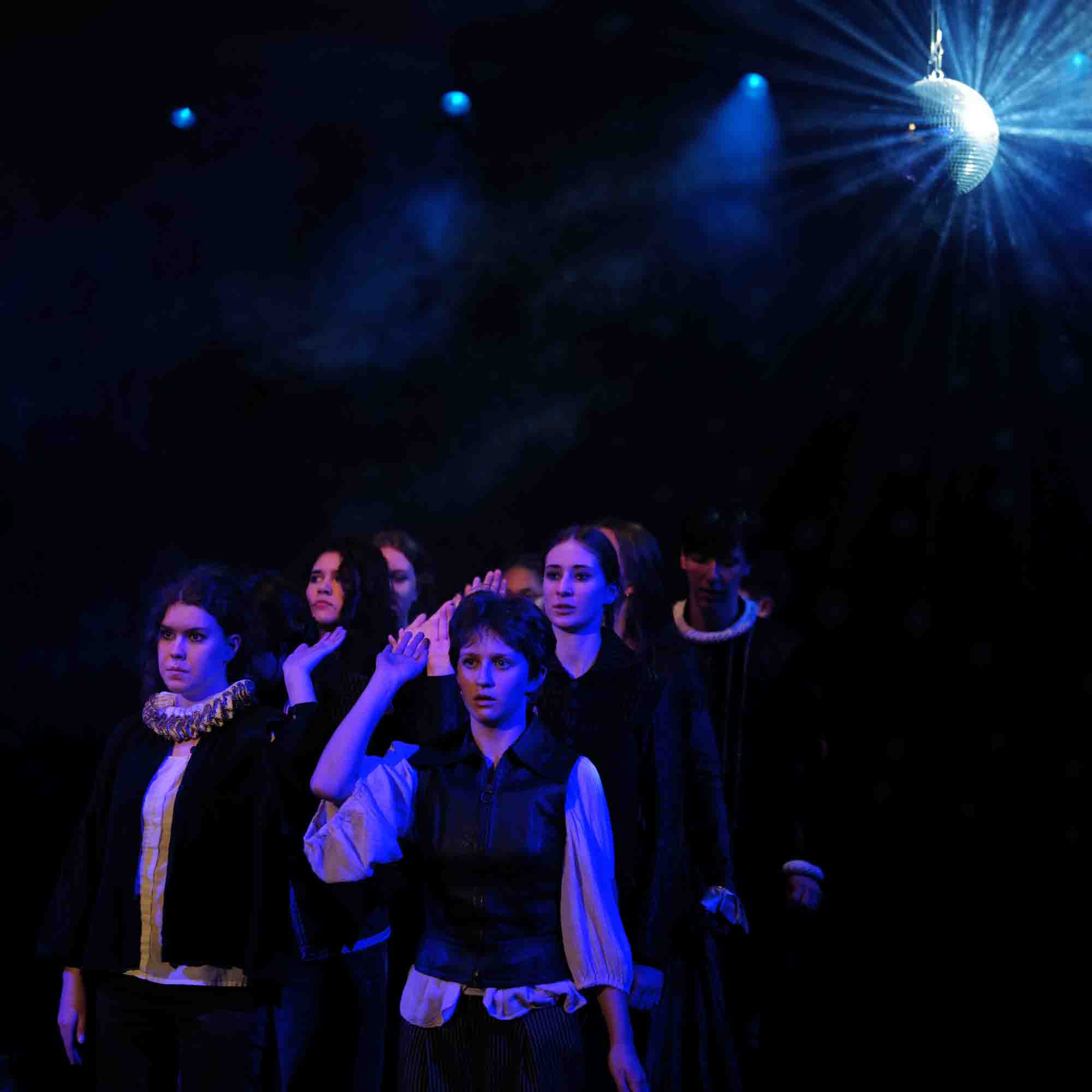 Es spielen: Sara Blöchlinger, Hanna Gödert, Sarah Jäger, Ilaria Kuhn, Mirja Kummer, Ida Minder, Grischa Pirk, Rafael Saez, Yemaja Schneider-Ludorff, Loesa Schwab, Bohuslav Serdiuk, Alessia Weiss, Rike Westerfeld